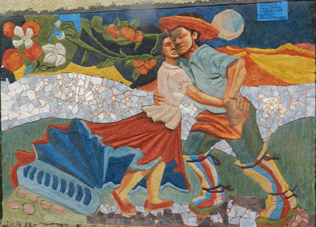 Mural esgrafiado en el barrio Evita. Caseros