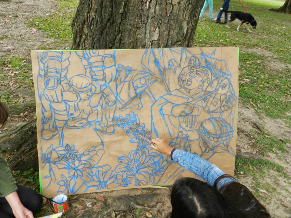 Frente a la embajada de Chile en Buenos Aires, se realizó el encuentro de muralistas en apoyo a los presos políticos Mapuches.